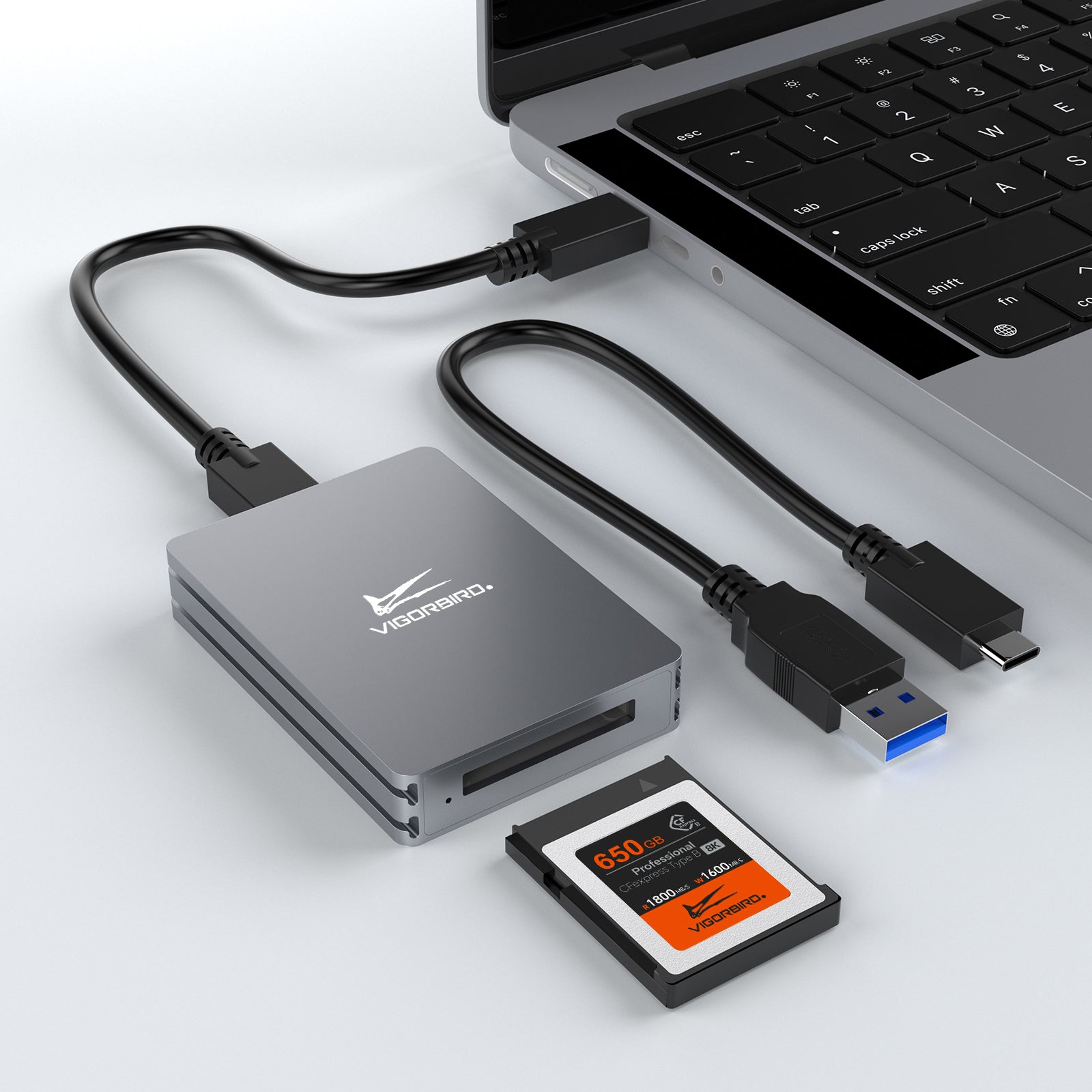 VIGORBIRD USB 3.2 Type-C CFexpress Type B card reader supports CFexpress Type B storage cards for optimal reading through a USB-C host port, allowing you to quickly and easily transfer your content for editing and backup purposes.